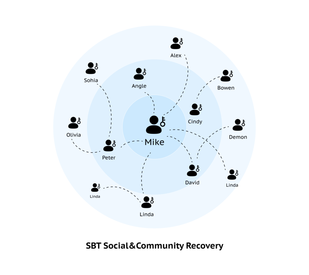 但是,仅依靠私钥进行身份验证可能会带来安全风险,因为私钥可能会丢失或被盗。在 Gain 网络中,我们将 SBT 视为与您的数字身份相关联的 web3 凭证。我们提出了一种开创性的社会/社区恢复方法,您将能够通过以下方式恢复您的资产:1) 灵魂在不同社区中拥有的最广泛的实时关系集;2) 依靠您信任的关系来恢复您的资产。