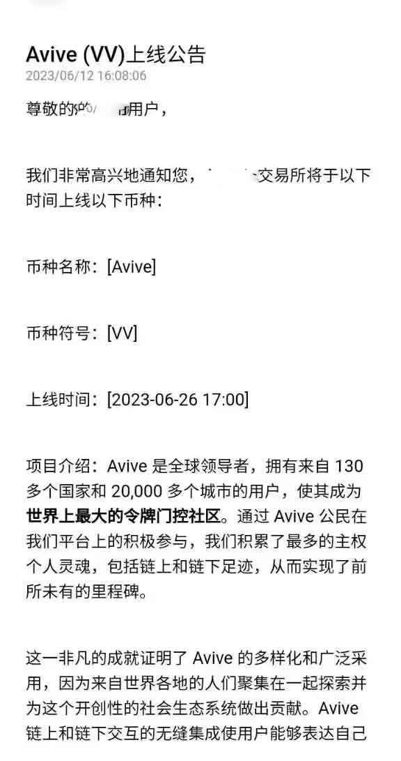 Avive(VV)上线公告,Avive于6月26日上交易所?别再被骗了哦