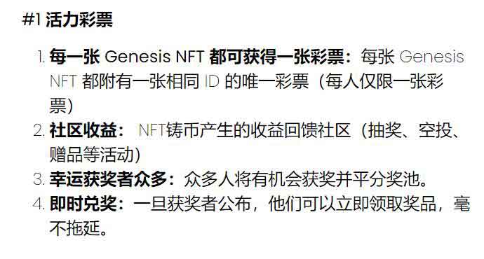 每个Genesis NFT都有一张彩票:每个Genesis NFT都有一张相同ID的唯一彩票(每人一张彩票)